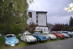Si è tenuto a Comano Terme l'8 – 9 Ottobre 2016 il 12° Samba Summit & Veteran Volkswagen Show, il tradizionale raduno autunnale del Club Volkswagen Italia. Quest’anno il raduno si è svolto tra Trento e la Comunità delle Giudicarie con centro logistico a Comano Terme (TN). Oltre al Club Volkswagen Italia, sostenitrice e promoter dell’evento è stata la Franzoni Auto Divisione Classic, insieme a T1 Specialist e RS Car Classic. Da qualche tempo era desiderio del Presidente del Club Volkswagen Italia, Marzio Cavazzuti, di condividere la conoscenza, con i soci ed amici del club, di quello che è il più antico museo italiano interamente dedicato al tema dell’aviazione: il Museo dell’Aeronautica Gianni Caproni, sito nell’aeroporto di Trento e dove si sono dati appuntamento i selezionati equipaggi provenienti dal centro e nord Italia. Variegata come sempre la rappresentanza dei veicoli che partiva dal 1951 con un pregiato due vetrini, affiancato e sempre in abito scuro un ovalino del 1956. Un’elegante vernice metallizzata caratterizzava un 1959 che apriva il periodo dei sempre ricercati e desiderati 6 volt degli anni ’60 nei classici caldi colori pastello e tra i quali segnaliamo la presenza dello speciale Typ 1 Mod. 11/117 del 1963 facente parte della famiglia degli “Herbie” di Gilles Antonelli, veicolo caratterizzato oltre che da un meticoloso restauro anche da molti gadget facenti parte dell’equipaggiamento del primo Herbie di “Love Bugs” quali, l’accensione motore, il funzionamento dei tergicristalli, claxon, tergicristalli e spruzzi d’acqua, telecomandati. Di questa serie, ma cabrio, presente anche un rarissimo e prestigioso cabrio 1500 del 1967. In questo contest ben si inseriva un ormai inarrivabile (per la reperibilità e le quotazioni) Typ2 “T1” Mod. 241/23 del 1961 meglio conosciuto con il nome di “Samba 23 vetrini”. Seguiva la rappresentanza delle versioni post ’67 con i paraurti a “binario”, che spaziava dal 1969 al 1974 con una versione 1600 realizzata per il mercato americano ma immatricolata per la prima volta in Austria e poi importata in Italia. Anche per questa serie le versioni Cabrio erano ben esibite, da un 1303 amaranto del 1973. Mentre per il Typ 2 del periodo, un Deluxe del 1970 con il suo classico bicolore faceva bella mostra di sé. Gradita presenza di un’ottima Typ 14 Mod. Karman Ghia Coupè , azzurra del 1974 di proprietà di Emilio Cozzio titolare dell’omonima Concessionaria locale Volkswagen e che ci ha fatto da apripista lungo il percorso.